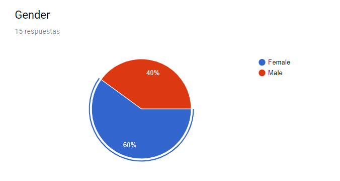 15 people participated in the survey. 60% percent of the surveyed were females, while the 40% left were men. This question was made so we know the ideology difference between both genders. As it is shown in Figure 1.